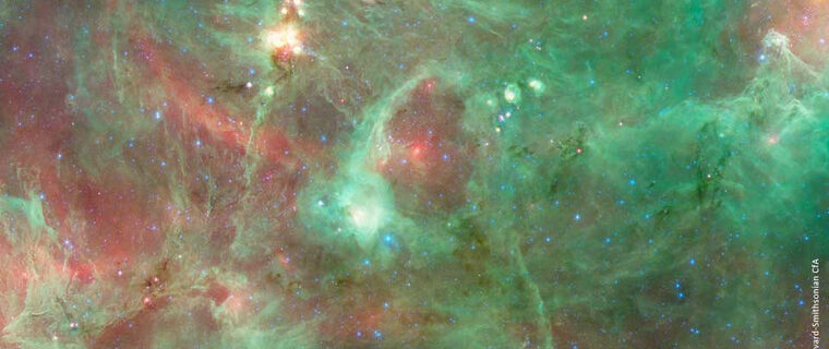 The ring has a diameter of around 20 light years and shines strongly in infrared light. It is the relic of a former cosmic bubble that was once formed by the radiation and winds of a massive star. In contrast to other similar objects, the ‘Diamond Ring’ does not have a rapidly expanding spherical shell, but only a slowly expanding ring.
