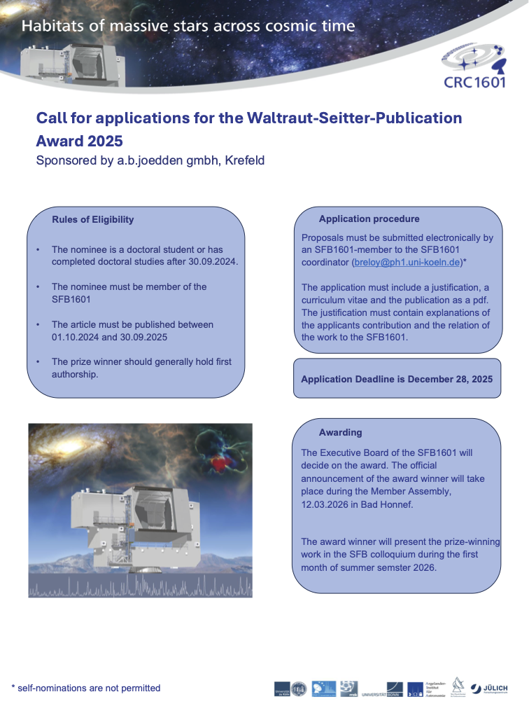 The Executive Board of the SFB1601 will decide on the award. The official announcement of the award winner will take place during the Member Assembly, 12.03. 2026 in Bad Honnef.