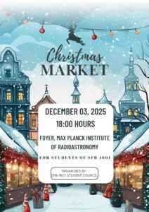 XMAS after work events have been organized by the Student Council on the 3rd of December at 18:00. CRC students meet at the foyer in the Max Planck Institute for Radioastronomy and then go to the market.